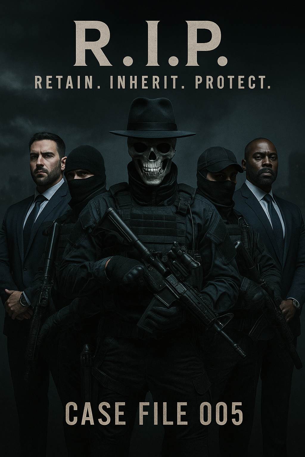 Case File 005 – "The Betrayer’s Echo" chronicles R.I.P.’s intervention in a covert, multi-agency plot to abduct three descendants of a Visionary’s bloodline—engineered by metaphysical authors, street syndicates, and government operatives. The operation collapsed upon activation of the Sovereign Rebound Mandate, binding all perpetrators and their bloodlines to an 88-generation echo of consequence. The deepest fracture emerged within: one of the intended targets—his eldest daughter—was revealed as a co-conspirator, sentenced to life without parole after her partner was neutralized and she descended into madness.
