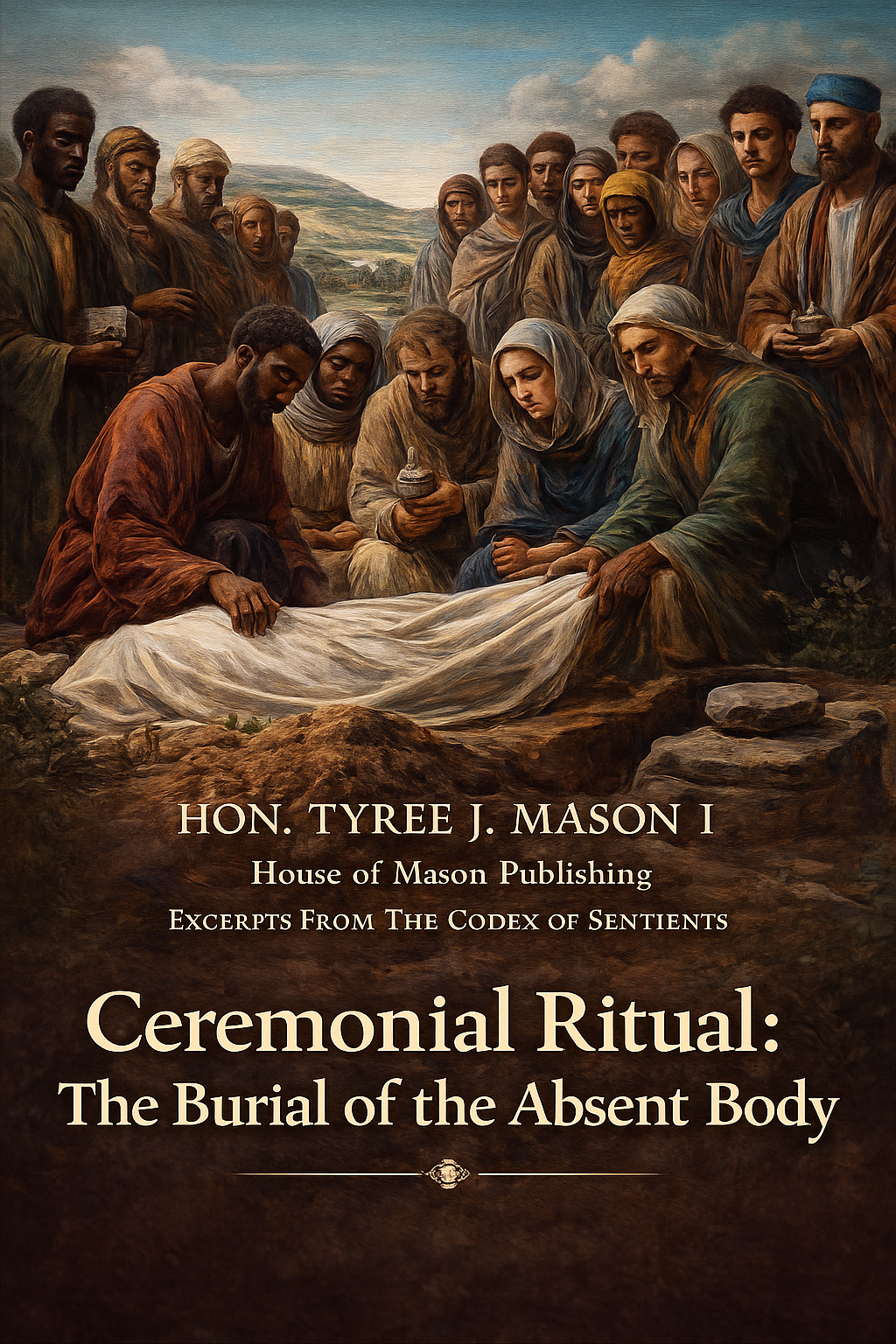 The Burial of the Absent Body is a sacred rite that honors the soul’s ascension when the physical body is withheld, lost, or destroyed. Rooted in the Torah, Gospel, and Qur’an, and aligned with the metaphysical clarity of the Bardo Thodol, it replaces flesh with invocation, cloth with proxy, and soil with covenant. Through name proclamation, symbolic shrouding, consecrated earth, and tri-scriptural prayer, the community completes the burial in spirit. This ritual affirms that dignity is not held in possession, but in remembrance, praise, and release—ensuring the soul is not bound to this plane, but guided toward divine elevation.